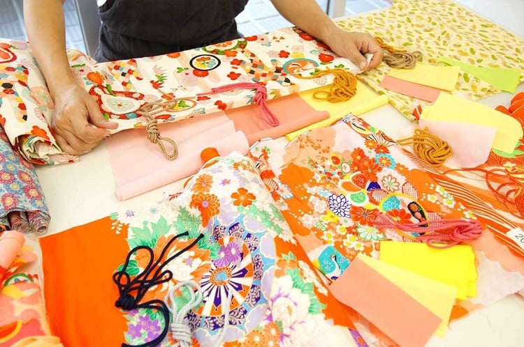 | 概要 | 何千枚もの中から選りすぐった着物地でONLY ONEの小物づくり。「日本に受け継がれてきた再生文化」、「衣類のリサイクルの現状」、「着物地の吉祥文様」について学び、旅の記念に”世界に一つだけの日本の美しさ”を、お土産に持って帰ることができます。製作を楽しんだ後は、カフェメニューからお好きなドリンクと焼き菓子をお召し上がりください。 |