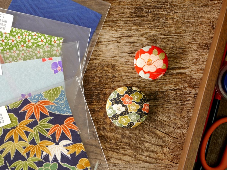 Watalis works to upcycle old kimonos into cute accessories. In this workshop, choose your favorite fabric from the colorful kimonos and create a one-of-a-kind button badge.
